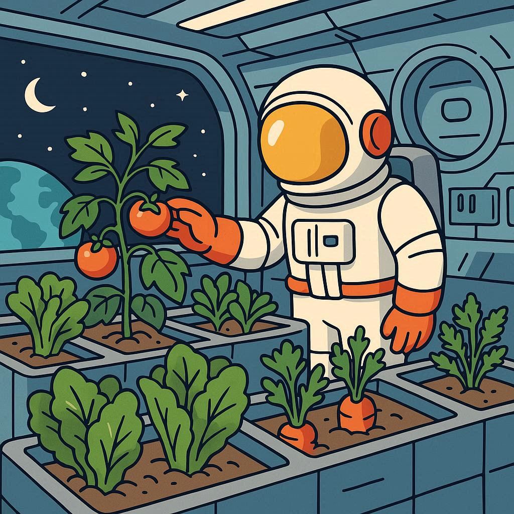 宇宙で育てる野菜の研究は「宇宙旅行だけの話」じゃないんだよ。たとえば、地球でも栄養バランスのいい食べものを育てたり、病気をなおす薬になる野菜を作るヒントになるんだ。